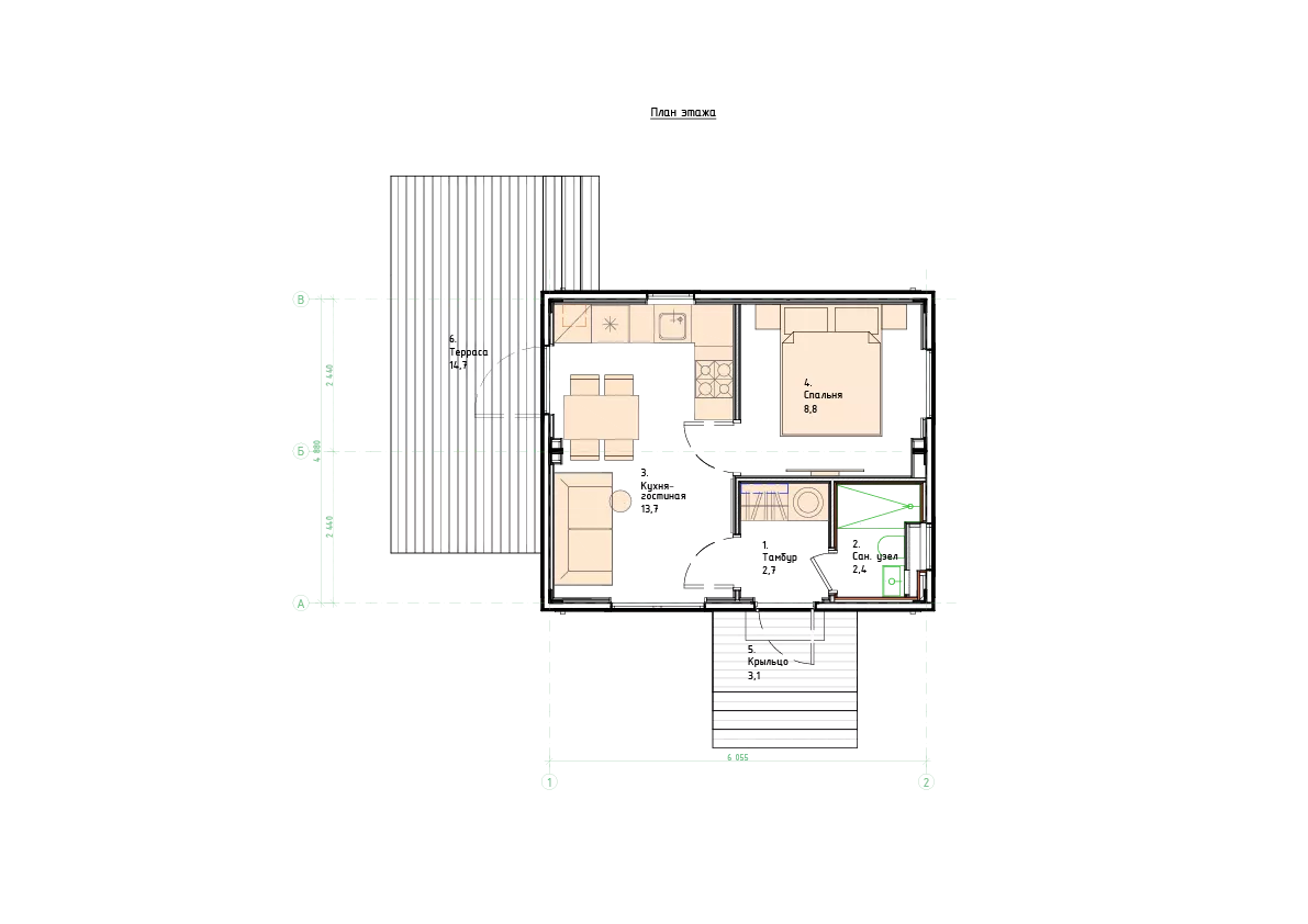 Модель серии "DoorHan Ультра 29" представляет одноэтажный дом современного дизайна общей площадью 29 квадратных метров. Этот компактный и экономичный вариант отлично подходит для маленькой семьи или пары, ищущей уютное и функциональное жилище.